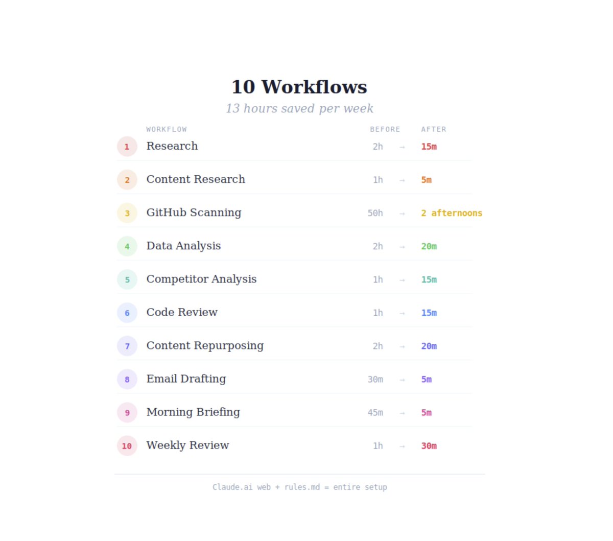 以下是我这个月用过的所有 Workflows——按节省时间排序 👇